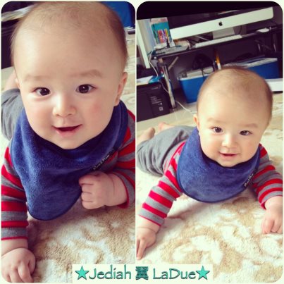 The latest picture of John and Jean's grandson, John and Chako's baby boy, Jediah Tsubasa LaDue, born November 12th, 2012. Picture of the old man in his ice hockey garb.
